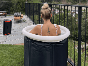 Wir empfehlen, pro Sitzung 6–12 kg Eis in dein Eisbad zu geben. Die benötigte Eismenge hängt von der Temperatur des Wassers und der gewünschten Kälte ab. In kälteren Regionen kann es sein, dass keine Eiszugabe erforderlich ist. Du kannst alternativ auch befüllte Flaschen einfrieren und sie etwa 30 Minuten vorher ins Wasser geben.