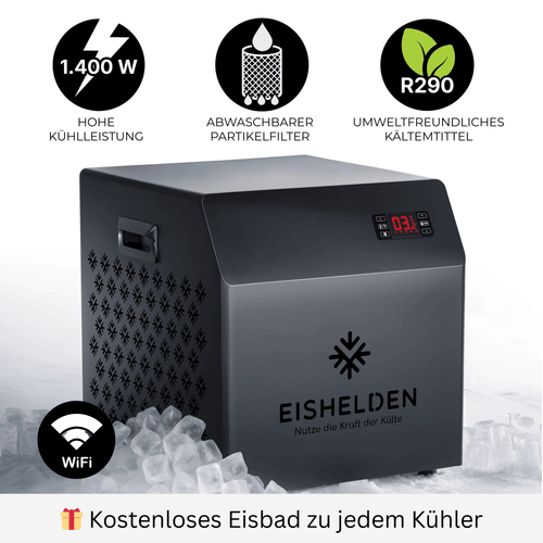 Das Eisbad wurde so konstruiert, dass es wetterfest und UV-beständig ist. Du kannst es sowohl drinnen als auch draußen aufstellen – selbst bei Minusgraden und wenn das Wasser gefriert. Die Isolierung verhindert, dass das Wasser zu schnell gefriert, aber es ist ratsam, das Wasser mindestens einmal täglich umzurühren, um ein komplettes Einfrieren so gut wie möglich zu verhindern.